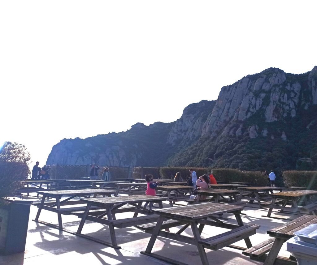 Ya, para este momento, tendríamos unas tres horas desde que llegamos a Montserrat. Toca descansar, llegó el momento de compartir impresiones, admirar el paisaje y merendar