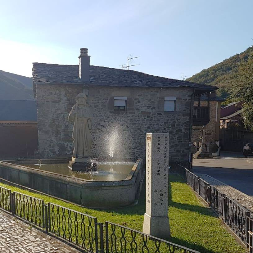 Pues con motivo de la peregrinación a Santiago, la región de Shikoku obsequió a Molinaseca que destaca por encontrarse en la peregrinación del Camino de Santiago, esta estructura de granito como símbolo de hermanamiento entre las dos localidades.